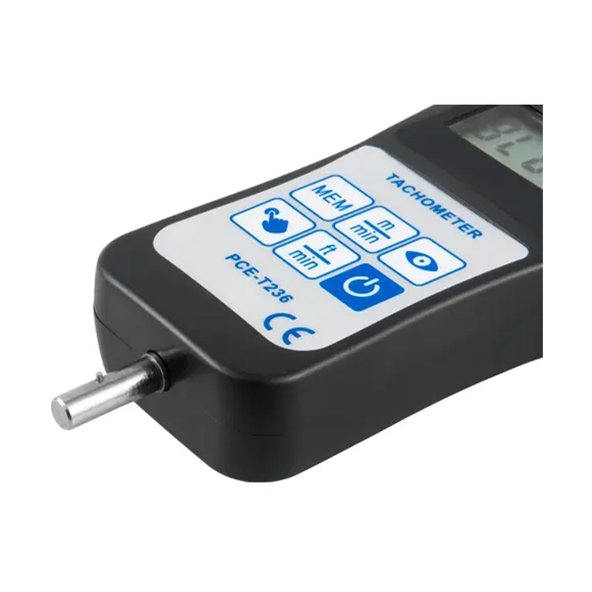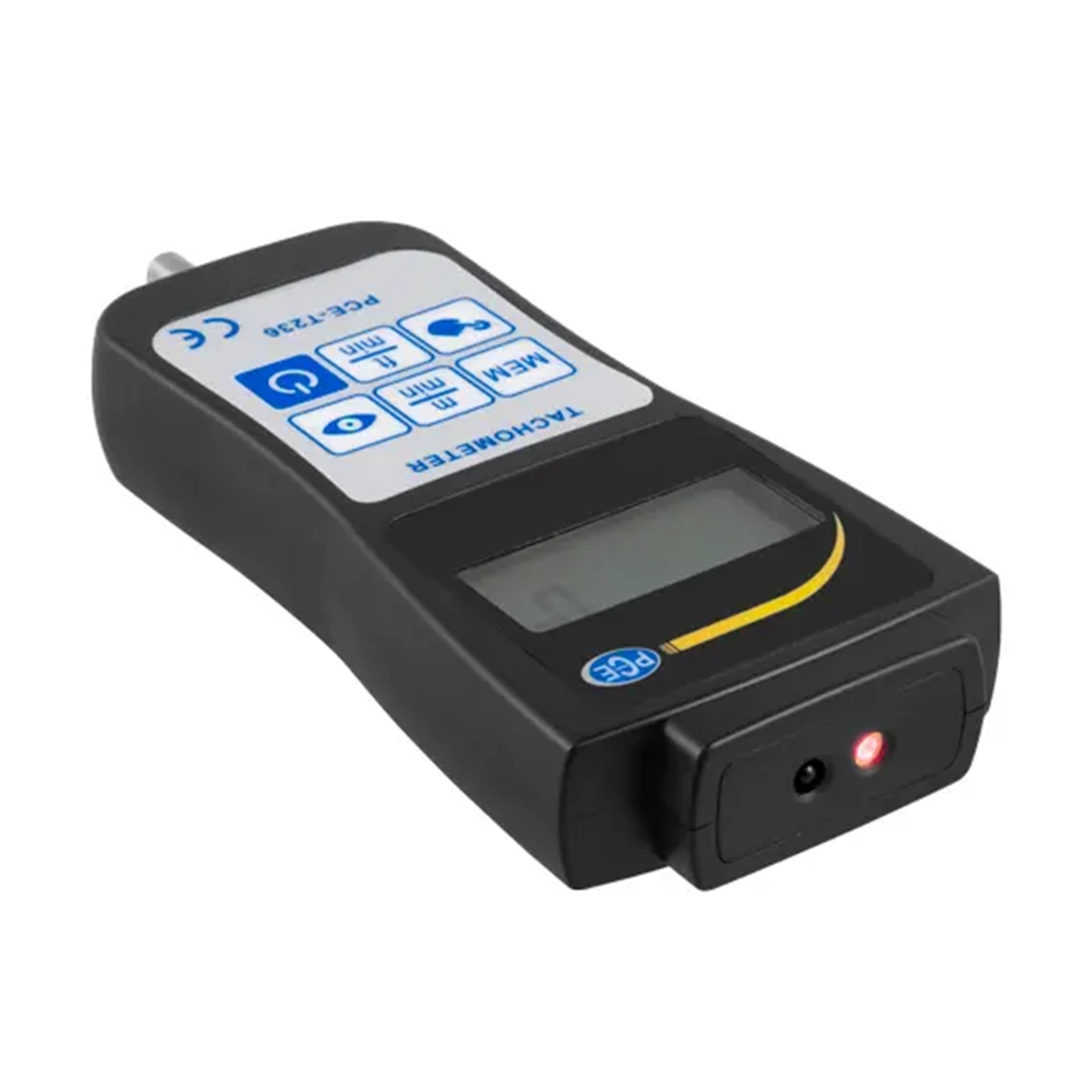 PCE-T236 is a digital handheld tachometer or rotation meter for both contact and non-contact measurement. This tachometer measures rotation speed as well as linear or surface speed, displaying units in rpm, m/min or ft/min.