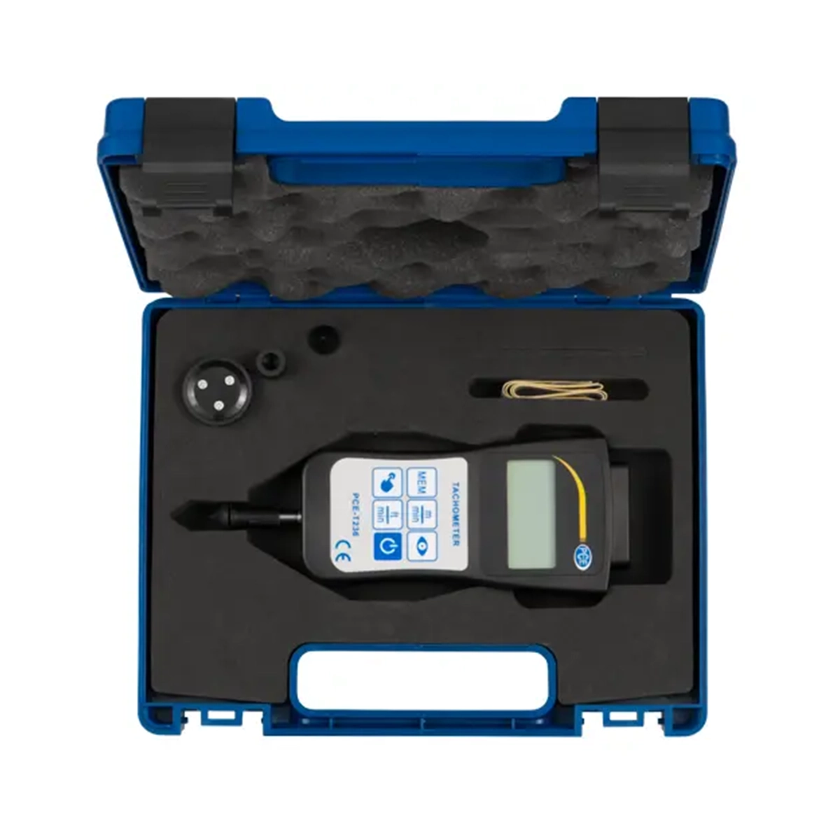 | Included Accessories | 1 x PCE-T236 Handheld tachometer, 1 x Conical mechanical attachment, 1 x Cylindrical mechanical attachment, 1 x Measuring wheel mechanical attachment, 1 x Roll of laser-reflective tape, 1 x Carrying case, 1 x User manual |