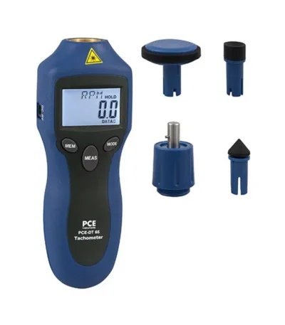 PCE-DT 65 Handheld Tachometer, for both contact and non-contact measurements of rotation speed and linear speed.